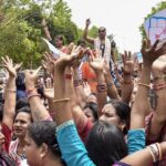 प्रदर्शन करते ट्रांसजेंडर समुदाय के लोग। Photo Credit: PTI
