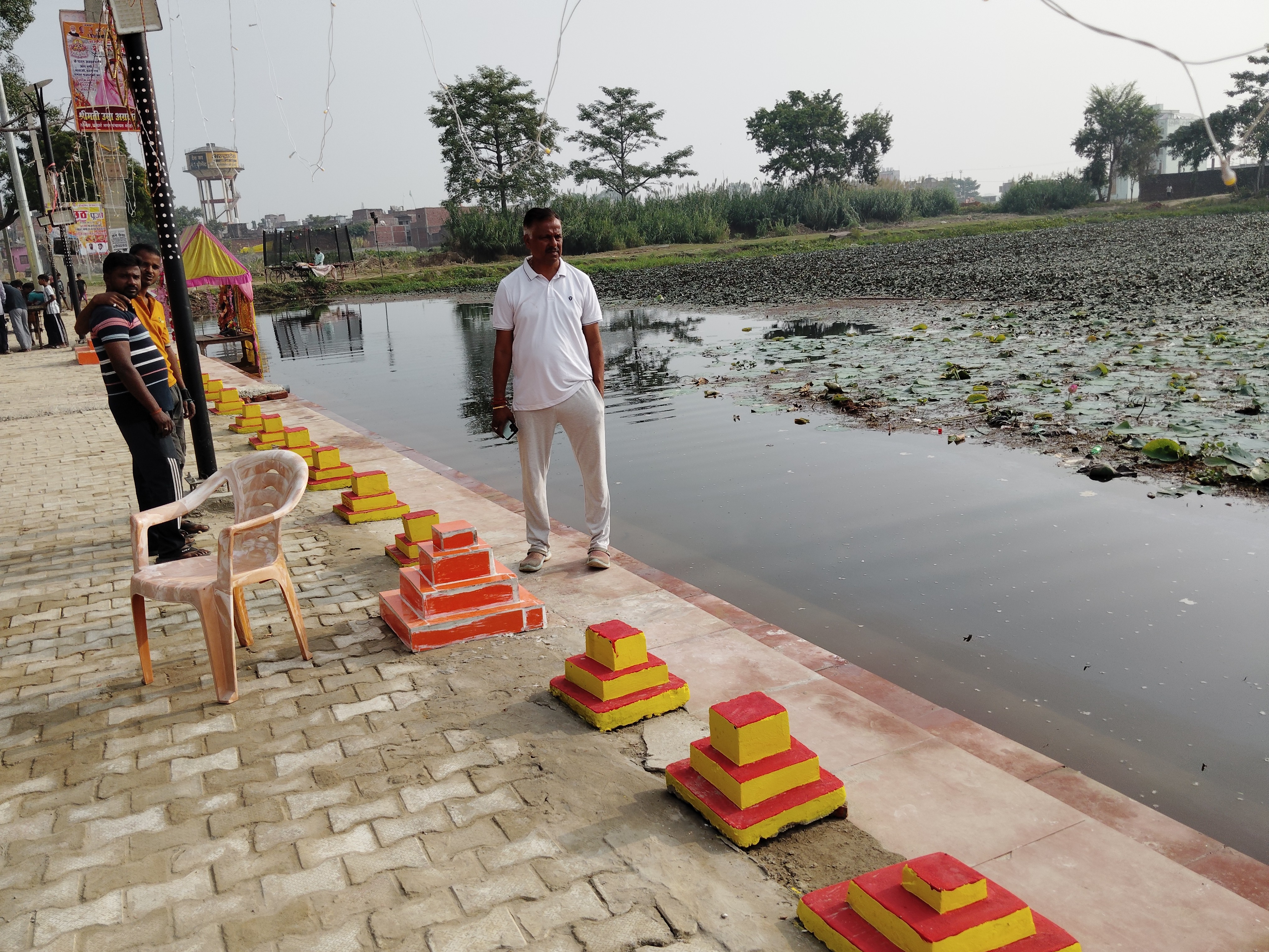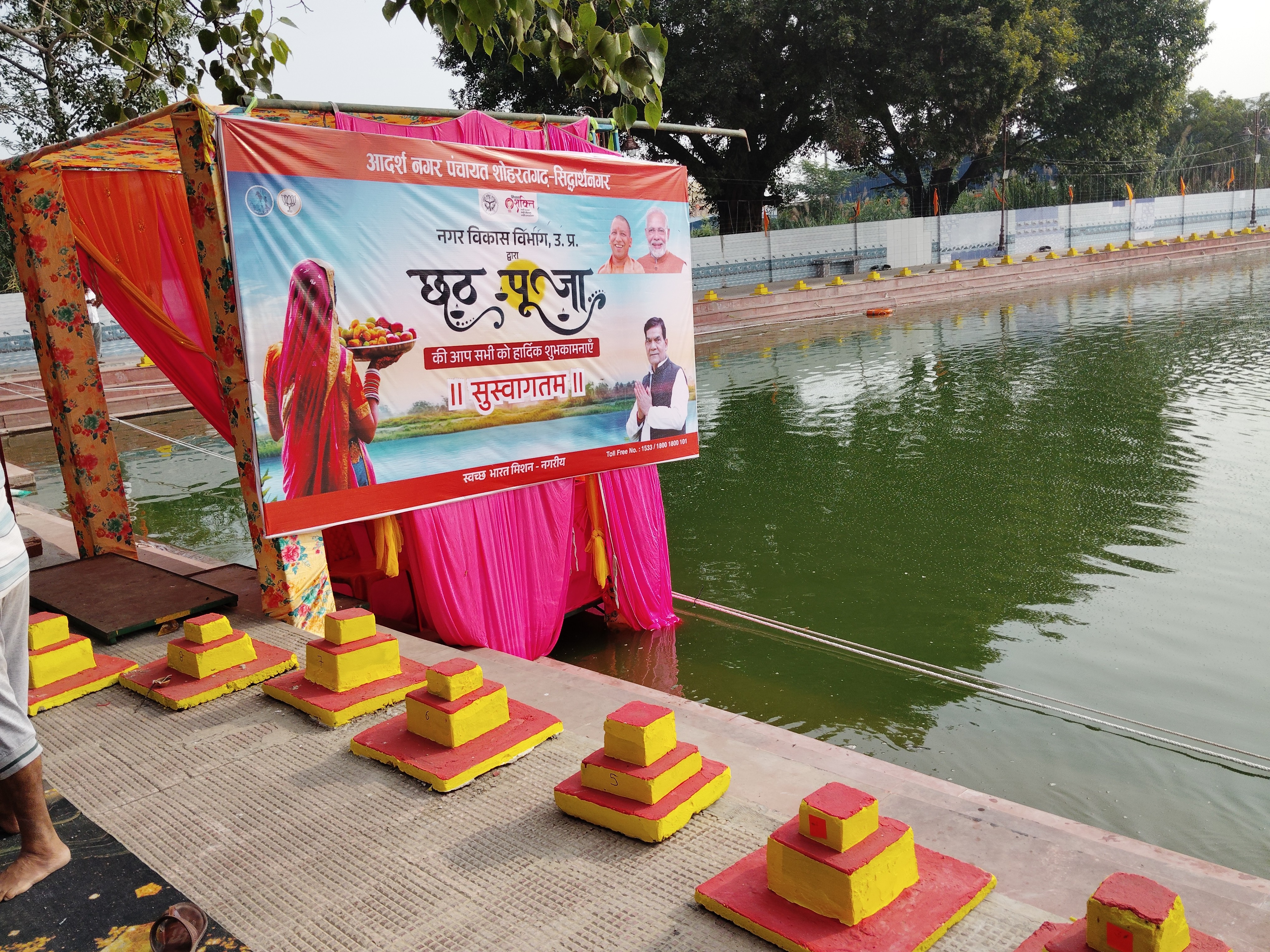 छठ घाटों की सजावट।