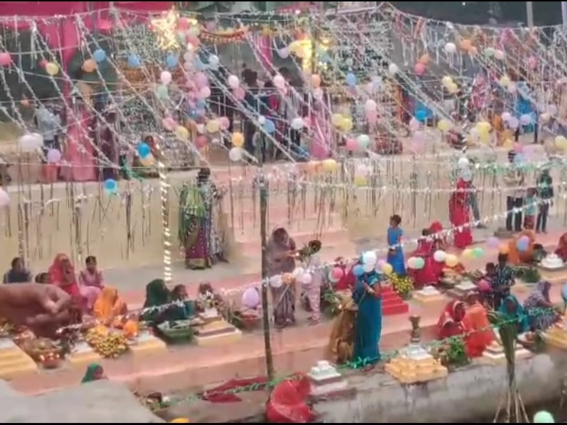 स्थानीय और आसपास के क्षेत्रों से आईं इन महिलाओं ने विधिवत रूप से छठी माई की पूजा-अर्चना की।