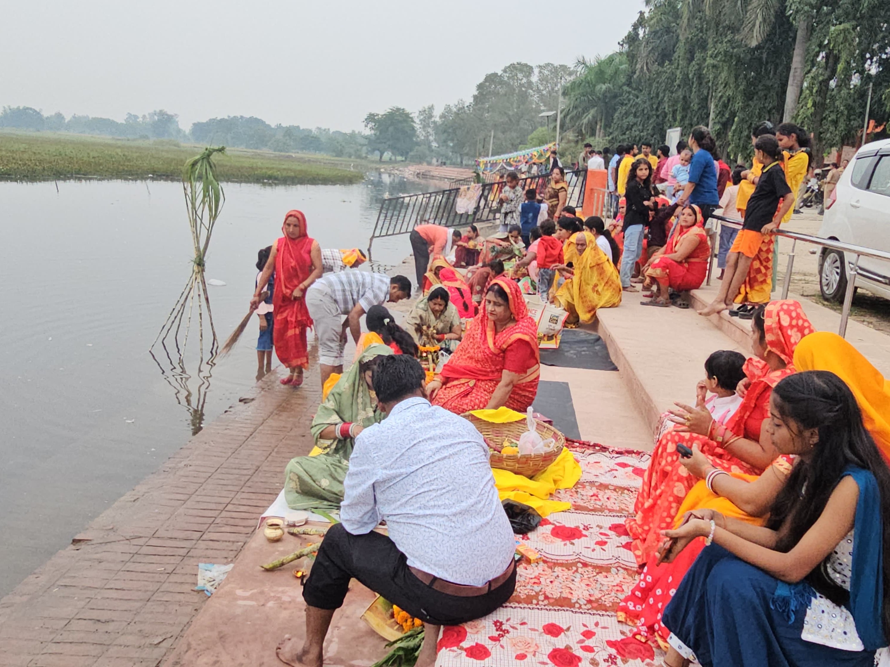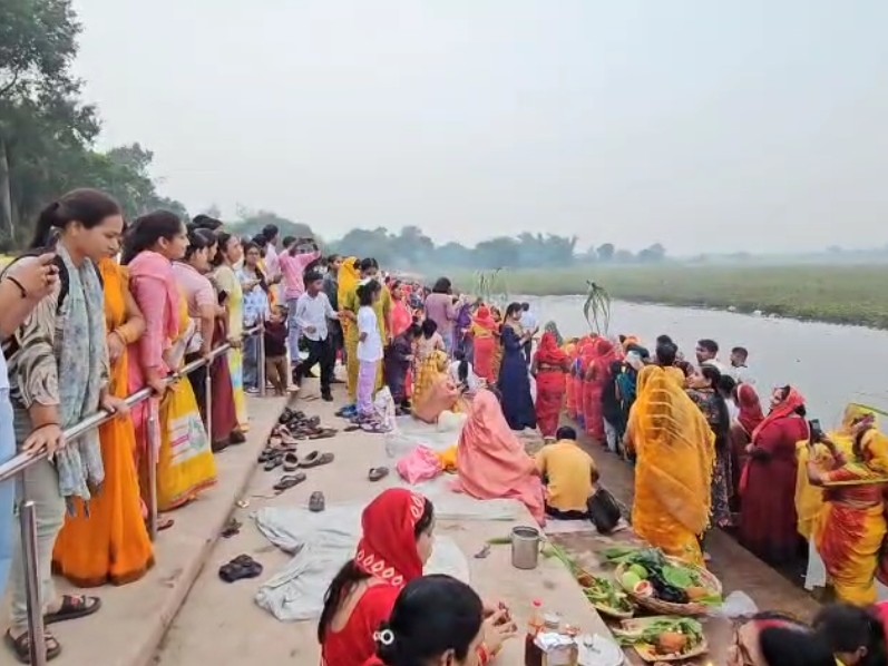 श्रद्धालुओं ने सीताद्वार और तिलकपुर गांव के सोनवा तालाब में बनाए गए कृत्रिम जलकुंड में खड़े होकर सूर्य देव की उपासना की। पूजा में फल, फूल, गन्ना, गुड़ व घी से बने ठेकुआ और चावल के आटे व गुड़ से बने भूसवा जैसे पारंपरिक व्यंजन अर्पित किए गए।